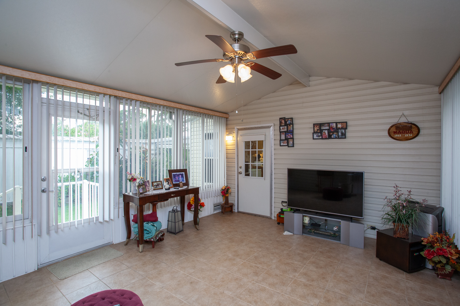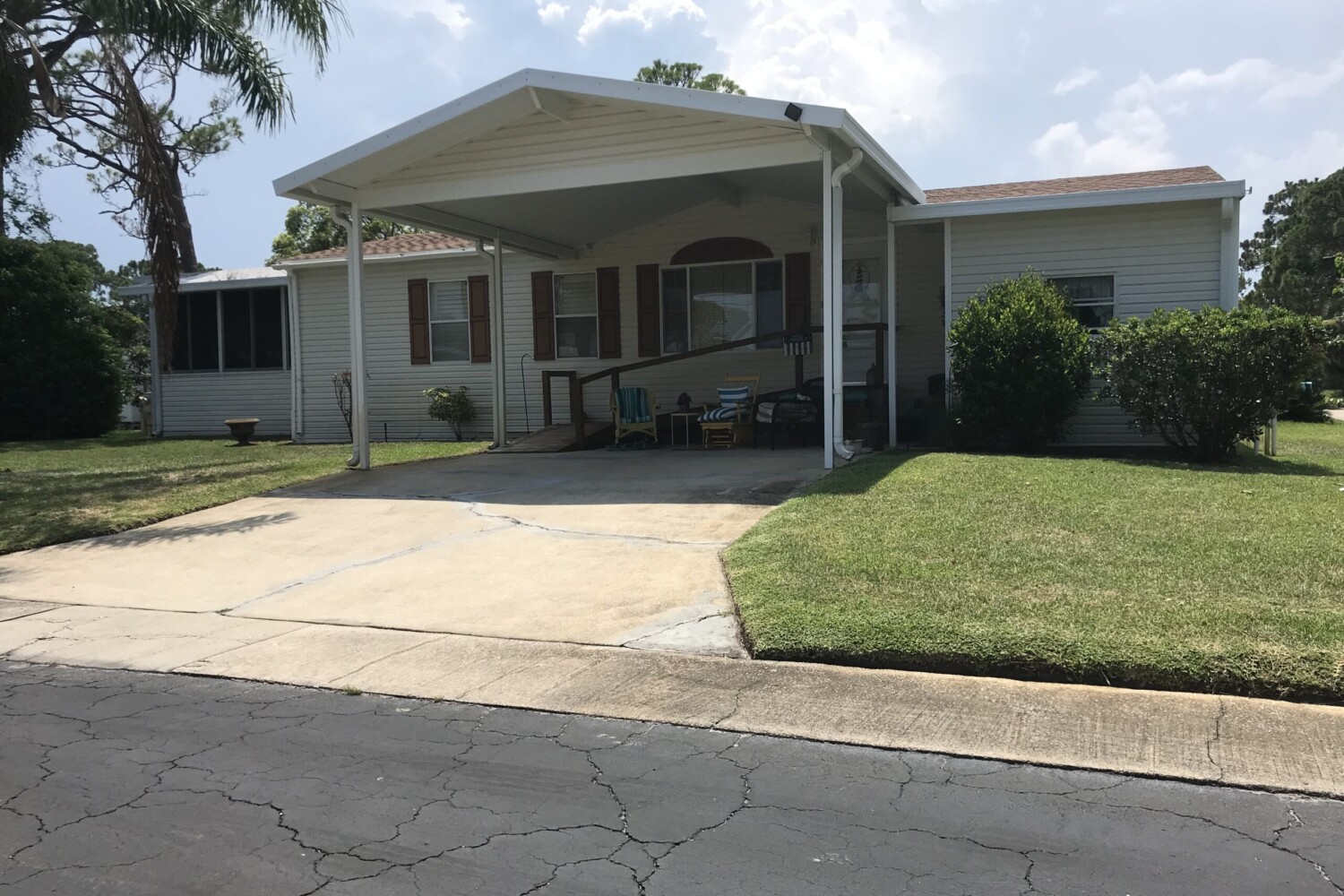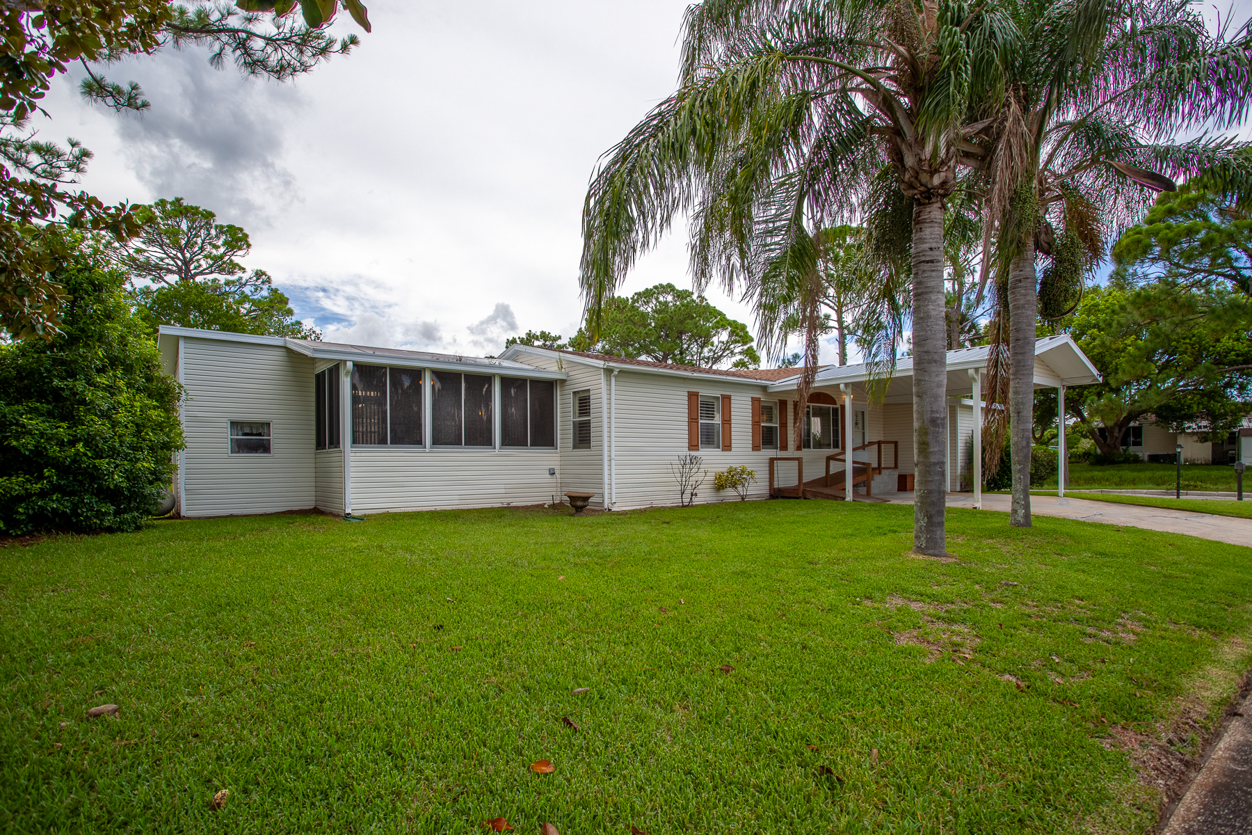 This well maintain home has 3 bedroom 2 bath and comes furnished. Enclosed tiled Florida room under A/C, customer window covers and so much more! Split floor plan with laundry room inside.. Home has a built-in generator for unexpected weather. Double carport with large shed on a corner lot. Experience the Thesman Lifestyle at our active 55+ land lease community where luxury meets affordability. For over 40 years we have set a standard with world class amenities and year-round activities. Our community has 2 beautiful clubhouses including ballroom, library with computers and individual rooms for cards, billiards, arts and crafts, and a fully equipped fitness center. Enjoy outdoor amenities heated pool and spa, lake for fishing, BBQ area, pet park, and shuffleboard. Our activities director assures a full calendar of social and recreational events. Our shuttle bus makes it easy and convenient to attend sporting and special events, plus local shopping. Whether you want to relax or stay active, our vibrant communities offer everything you need to enjoy life to the fullest. Discover us and start living the Thesman Lifestyle today! Welcome to your new home!