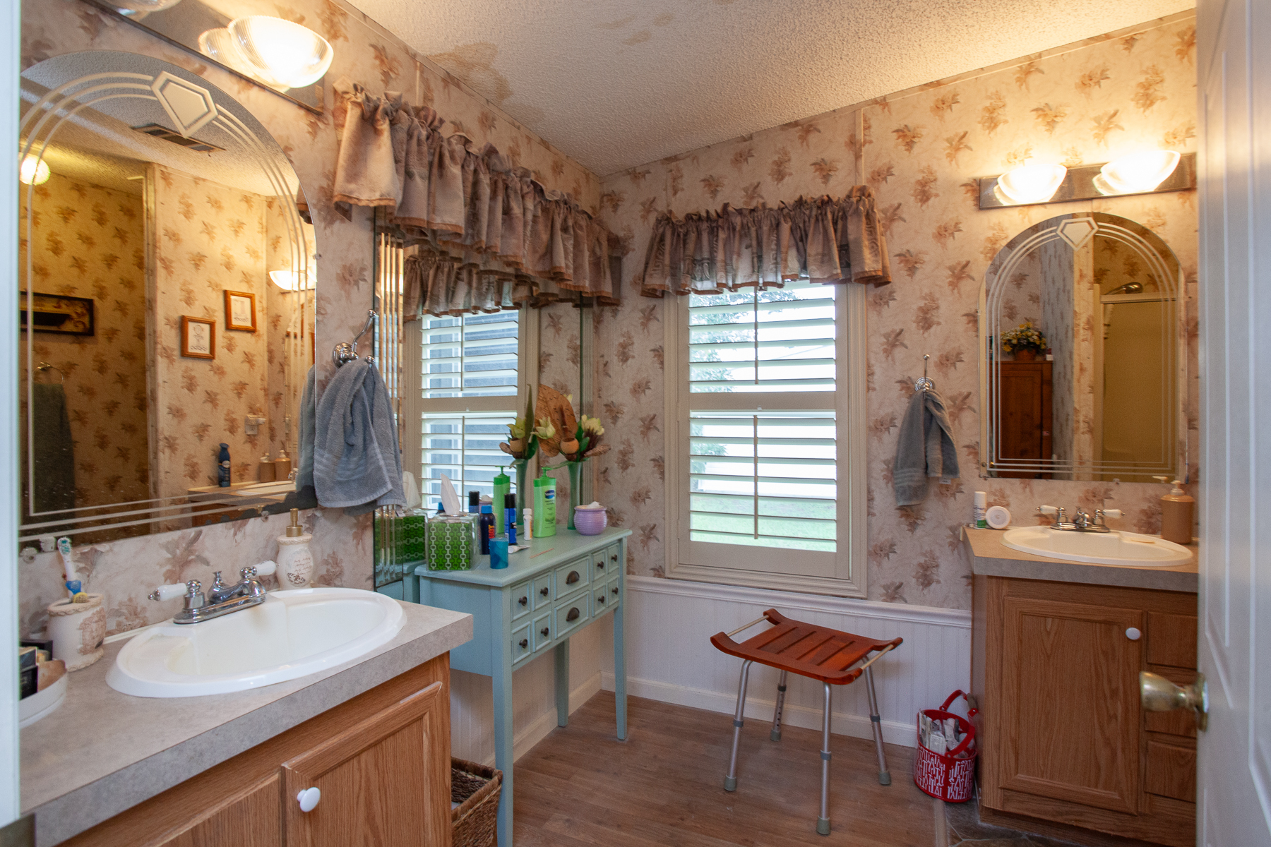 - Wood cabinet doors with molding throughout